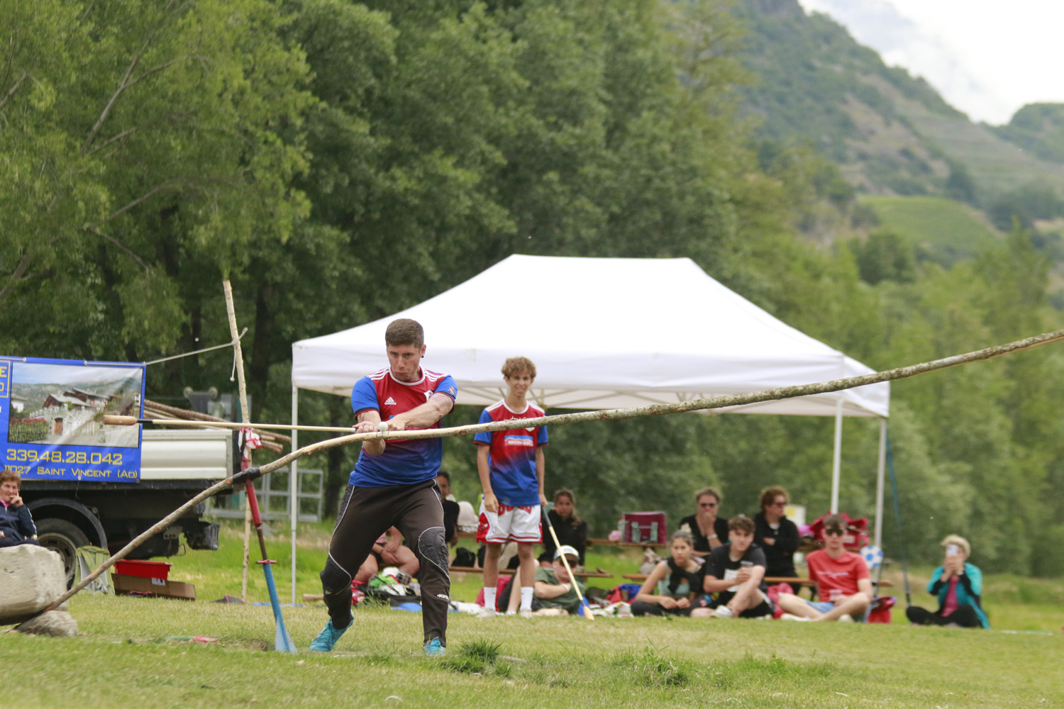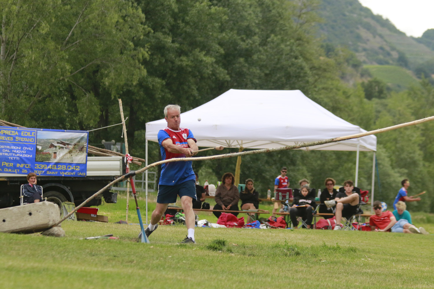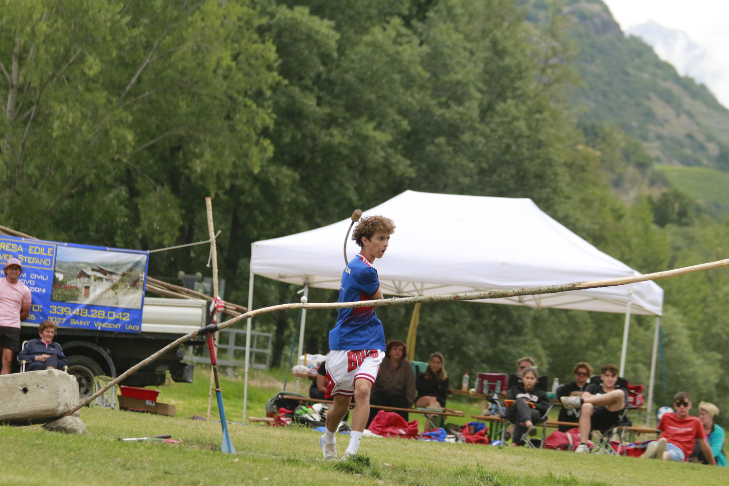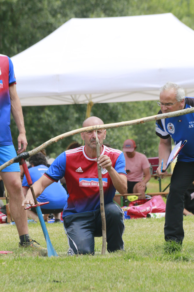 Parte bene Montjovet in pertse con 19 buone e 1017 m da segnalare Patrick Surroz 5 buone e 312 m. Ayas risponde anch’egli con 19 buone e con una bella media alla paletou (67 m di media) totalizza 1266 m con Francesco Mauriello autore di 6 buone trasformate in 477 m. Dopo la prima tsacha’ con 19 buone a testa l’Ayas si trova avanti di 269 m ( 20 metri di penalita’ per il Montjovet da togliere a fine gara). Montjovet torna in pertse e mette a referto 13 buone e realizza 603 m e va in campo a diffendere 334 m. L’Ayas parte un pò a rilento in pertica, complice anche una buona prova in campo degli avversari, ma poi Alex Merlet sblocca la partita con 7 buone (476 m) e così porta il totale della sua squadra a 12 buone trasformate in 692 m che valgono la vittoria del campionato di serie C.